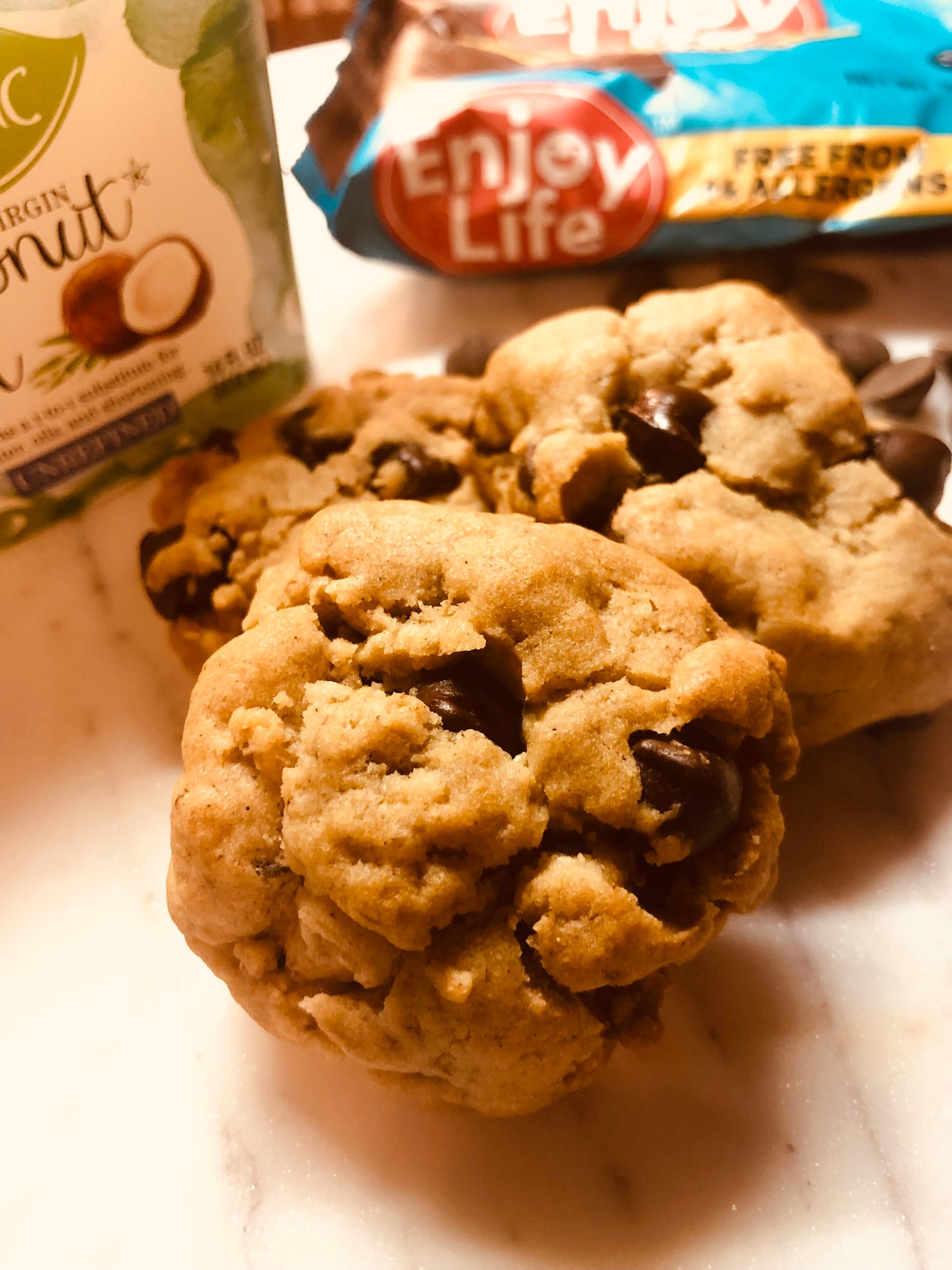 Nobody will know these aren't made with wheat flour, eggs, or butter. Coconut oil, King Arthur GF flour, and a secret ingredient are the key players in these delicious cookies!